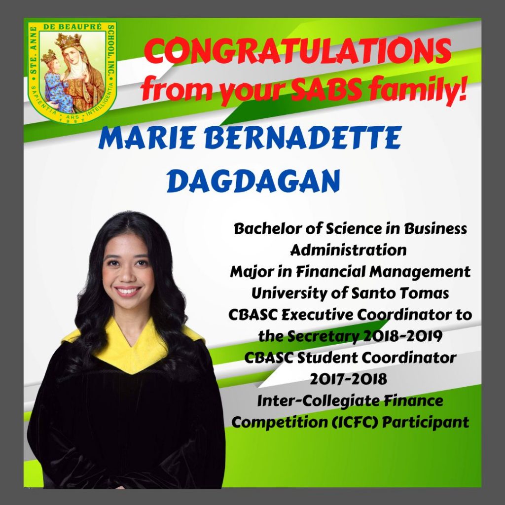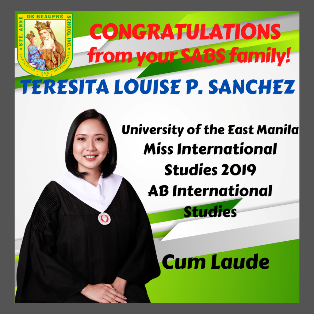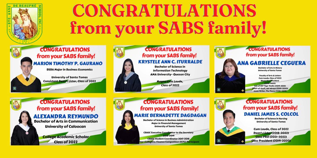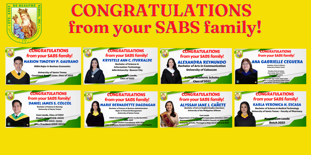 CONGRATULATIONS DEAR ALUMNI! Continue to make your mark as you make a name in this world! You truly make us proud! May good Ste. Anne, together with Jesus’ teachings, lead you to further successes!