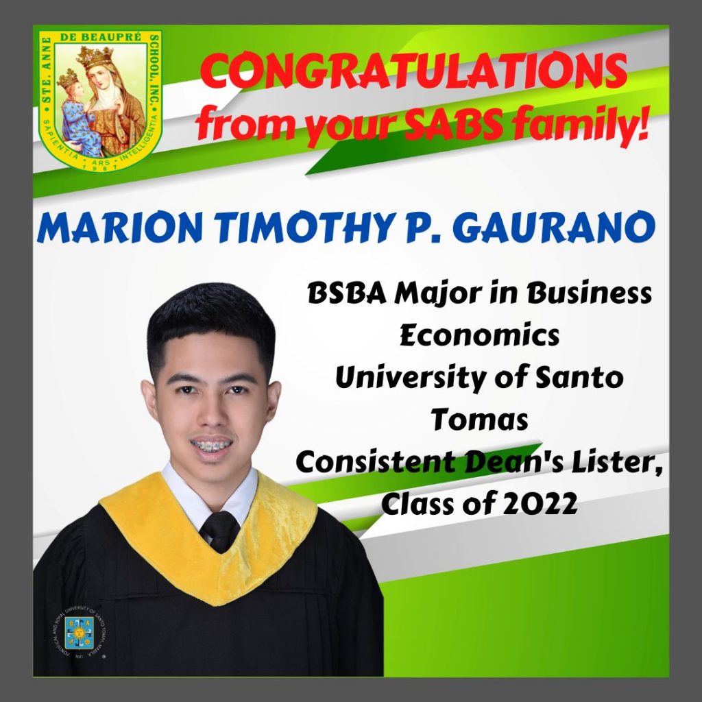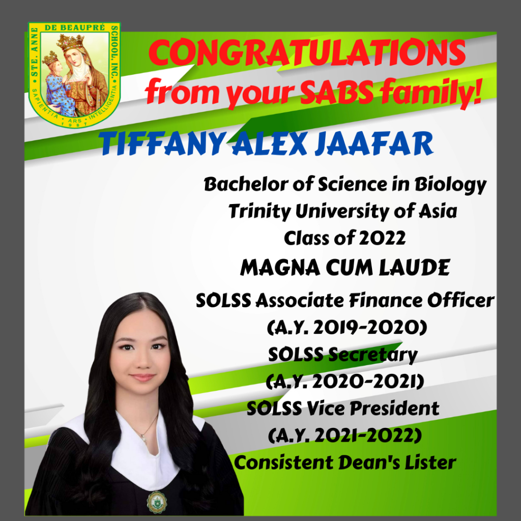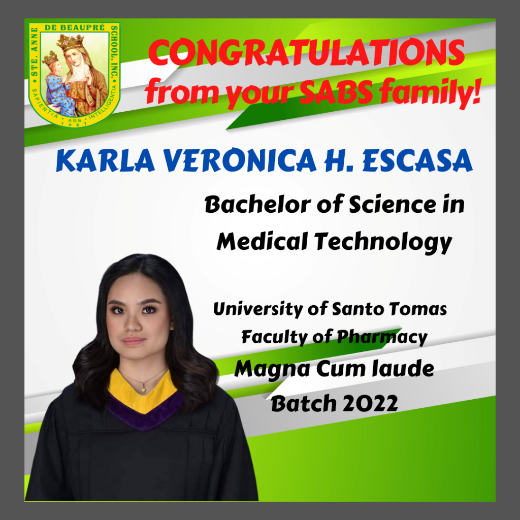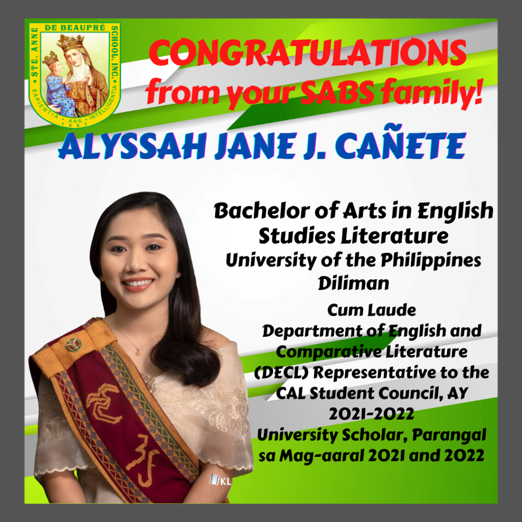 CONGRATULATIONS DEAR ALUMNI! Continue to make your mark as you make a name in this world! You truly make us proud! May good Ste. Anne, together with Jesus’ teachings, lead you to further successes!